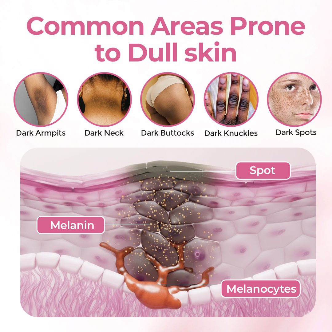 ❌ Darkened skin in intimate or high-friction areas