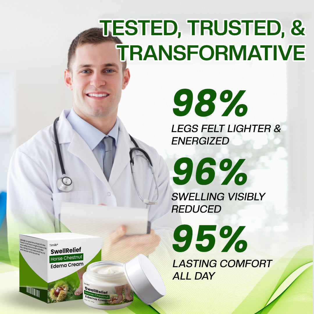 With thousands of products already in use and praised by wellness experts, Timilk® SwellRelief Horse Chestnut Edema Cream is fast becoming the go-to choice for easing swelling, heaviness, and discomfort in tired legs. Clinical evaluations highlight zero reported side effects and an outstanding 98.9% satisfaction rate. And because we believe in its results, every jar is backed by our 90-day, 100% money-back guarantee—absolutely risk-free.